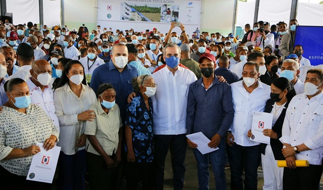 NAGUA. – El presidente Luis Abinader entregó aquí 600 títulos de propiedad de parcelas, solares y viviendas a a fin de beneficiar a 2,400 personas del municipio El Factor, de la provincia María Trinidad Sánchez.