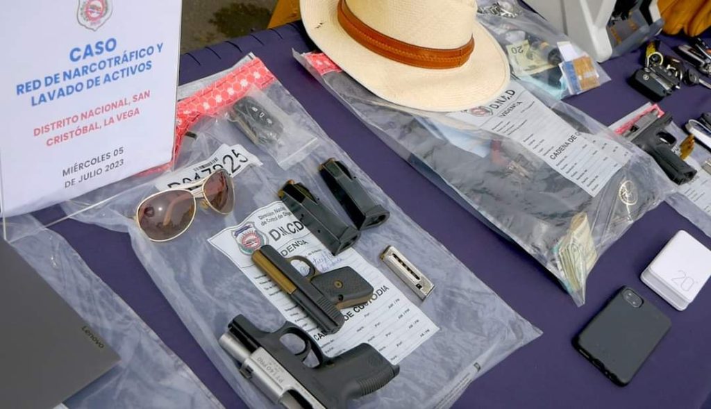 Las autoridades intervinieron dos compañías de productos agrícolas, una discoteca, oficinas de préstamos, apartamentos y residencias, donde se ocuparon doce vehículos, prendas, cuatro armas de fuego, RD $ 5, 234, 450 pesos, tres mil dólares, varias computadoras, maquinas para prensar, cajas, balanzas, fundas y otros equipos.