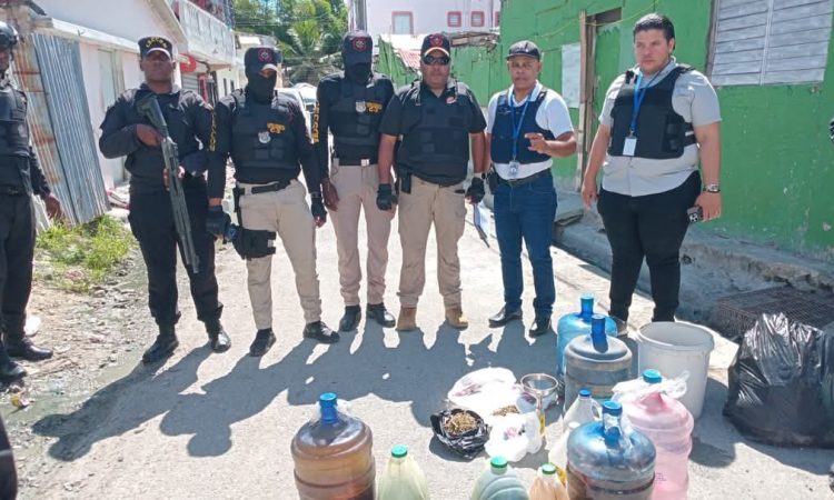 Mercancías (CECCOM) decomisó 865 litros de alcohol no aptas para consumo, 920 unidades de cigarrillos en condición de contrabando y 12 porciones grandes de un vegetal que se presume es Marihuana, durante cinco operativos simultáneos en Verón, Punta Cana, donde fueron apresados dos personas de nacionalidad haitiana indocumentados.