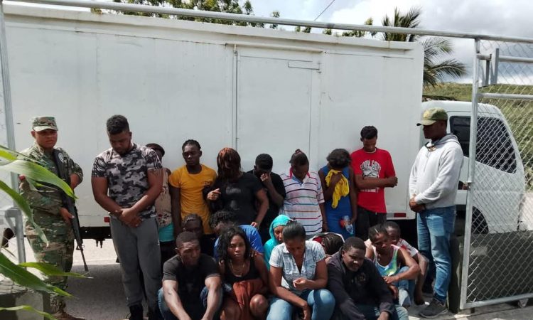 San Juan de la Maguana . En un camión interceptado por miembros del Ejército de República Dominicana fueron encontrados 18 inmigrantes haitianos indocumentados ocultos en el furgón cerrado del mismo, cuando intentaba evadir un puesto de chequeo tomando un atajo alterno a la carretera.