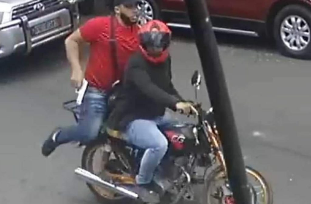 El pistolero, vestido con suéter rojo, pantalón azul y una gorra, huyó del lugar a bordo de una motocicleta que manejaba otra persona que portaba casco protector.